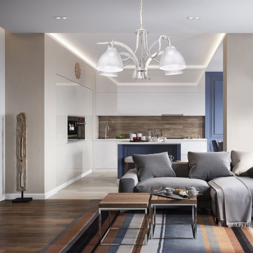 Люстра подвесная большая 5 плафонов белая S3147-5